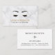 Cartões de visita elegantes para especialistas em cílios, técnicos de sobrancelhas, esteticistas ou artistas de maquiagem apresentam um par de cílios e sobrancelhas com ouro falso em um fundo de mármore branco com duas linhas de texto personalizado em cor dourada e preto. Personalize o verso com seus detalhes de contato completos. Envie-me uma mensagem se precisar de ajuda ou tiver alguma solicitação especial.