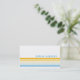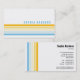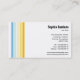 Um modelo de cartão de negócios com um motivo de faixa horizontal de cinco cores na frente com as mesmas faixas em execução vertical na parte traseira e alinhadas à esquerda. Nome na frente em letras de espaço duplo. O nome também é repetido no verso com o título/cargo e os detalhes de contato abaixo. Este modelo de cartão foi concebido principalmente para um indivíduo ou um freelancer que pode, evidentemente, ser mais personalizado e pode ser facilmente adaptado para outras utilizações.