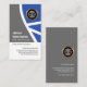 No verso, em uma cobrir de cinza, o logotipo do globo ouro está no topo, seguido do nome comercial, dos detalhes de contato e de uma opção de slogan para divulgar seus serviços.