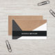 Modelo de cartão de negócios elegante moderno com fundo de papel kraft impresso e triângulos brancos/cinzas e faixa preta. Elegante e legal design. Perfeito para designer de interiores, designer, profissionais relacionados à decoração de casas, consultor e muito mais.