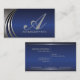 Cinza de prata de metal azul, cartões de visitas de reconhecimento ocular monograma. Um design moderno, com curvas de cinza de prata metálica com contorno preto e seu monograma/inicial sobre fundo azul gradiente. Clique em "Personalizar" para obter um resultado melhor e escolher a cor, e coloque-o para a sua primeira opção. Perfeito para muitas áreas da indústria, construção, seguros, finanças, engenheiros e muito mais.