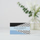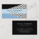 Cartões de visitas elegantes, na moda e sofisticados com padrão zigzag (chevron) em cinzas e cor branca com manchas azuis e pretas de cor. Design moderno e moderno, perfeito para amantes de ziguezague.