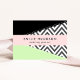 Cartões de visitas elegantes, na moda e sofisticados com padrão zigzag (chevron) em cinzas e cor branca com manchas de cor preta e menta. Design moderno e moderno, perfeito para amantes de ziguezague.