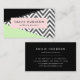 Cartões de visitas elegantes, na moda e sofisticados com padrão zigzag (chevron) em cinzas e cor branca com manchas de cor preta e menta. Design moderno e moderno, perfeito para amantes de ziguezague.