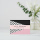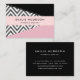 Cartões de visitas elegantes, na moda e sofisticados com padrão zigzag (chevron) em cinzas e cor branca com manchas cor rosa e pretas. Design moderno e moderno, perfeito para amantes de ziguezague.