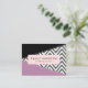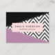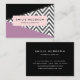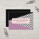 Cartões de visitas elegantes, na moda e sofisticados com padrão zigzag (chevron) em cinzas e cor branca com manchas roxas e pretas de cor. Design moderno e moderno, perfeito para amantes de ziguezague.