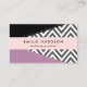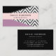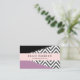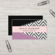 Cartões de visitas elegantes, na moda e sofisticados com padrão zigzag (chevron) em cinzas e cor branca com manchas roxas e pretas de cor. Design moderno e moderno, perfeito para amantes de ziguezague.