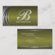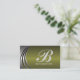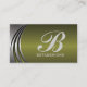 Cartão De Visita Cinzas de prata metálica, monograma verde-azeitona