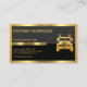 No verso, é utilizado o mesmo tema do design. Logo acima da guia dourada está seu nome prestigioso, o nome comercial com o logotipo do caminhão de ouro à direita. Em direção à camada preta estão os detalhes de contato e uma legenda de slogan para divulgar seus serviços. Todas as letras do cartão estão em ouro falso.