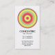 Um modelo de cartão de negócios na moda com um motor de redondo concêntrico atraente. Detalhes principais da empresa na frente, com nome e contato pessoal na parte traseira.