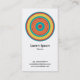 Um modelo de cartão de negócios na moda com um motor de redondo concêntrico atraente. Detalhes principais da empresa na frente, com nome e contato pessoal na parte traseira.