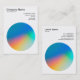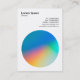 Um modelo de cartão de negócios com um motor de círculo de gradiente ousado atraente. Nome da empresa, tipo de negócio e endereço na frente com nome, cargo, telefonia, web e endereços de e-mail no verso, com o mesmo layout. Um abstrato geométrico moderno e afiado, adequado para muitos tipos de empresas e usos.