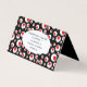 Esta dobra sobre o cartão de visita de pé tem um padrão geométrico de círculos com círculos vermelhos brilhantes dentro maiores círculos brancos sobre um fundo preto com um oval branco para sua informação na frente e atrás. Personalize todas as suas informações na frente, na parte traseira e na dentro com os modelos.