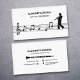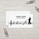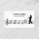 Um simples cartão de visita com uma silhueta de um clarinetista caminhando sobre uma folha de música incluindo uma pitada e anotações. As costas vêm com informações de contato perfeitamente personalizáveis, decoradas por ícones e uma ilustração clarineta. Perfeito para clarinetista, aulas, professor, intérprete musicista, concerto, etc.