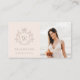 Cartão De Visita Clássico Blush Pink Monograma Foto Floral Crest
