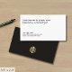Faça uma impressão duradoura com nossos Cartões de visitas clássicos profissionais minimalistas apresentando a tipografia tradicional em um simples fundo branco limpo. A parte traseira apresenta um emblema geométrico dourado impressionante que pode ser substituído pelo seu logotipo. Perfeito para qualquer profissional de negócios que queira criar uma impressão duradoura.