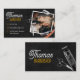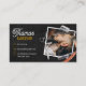 Mergulhe a sua clientela no sofisticado ambiente do seu compro barbeiro com o nosso Cartão de visita de Clipe de Cabelo de Tesoura de Mata Negra. Adaptado para barbeiros, cabeleireiros e salões, este cartão de visita único apresenta um fundo de madeira preta cativante, adornado com ferramentas de barbearia essenciais, incluindo tesouras e decapantes de cabelo, criando uma atmosfera de profissionalismo moderno e encanto clássico.