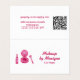 Essas cartões de visitas dobradas podem ser bastante eficazes para conectar-se a clientes potenciais! Use-os para escrever uma mensagem pessoal, como um aviso de tenda de mesa em um casamento ou evento especial, ou personalizá-los ainda mais, adicionando um menu de preço no lado interno. Design apresenta elementos de maquiagem metálicos rosa-quente e texto com código QR personalizável de mídia social atrás.