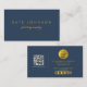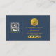 Cartão De Visita Código de QR de Script Moderno Dourado Azul Mídia