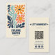 Um cartão de visita de flores florais coloridas da Vintage. Como podem ver, ele apresenta um padrão floral feito à mão de margaridas de flor de abstrato boho. Ele tem vibrações e cores de anos setenta nostálgicos e fontes de entalhe. E você pode personalizar o nome, a profissão e o código QR de forma simples e fácil. Clicando no botão personalizar. Então pegue-o e faça-o seu para que seu negócio seja atrativo e muito diferente.