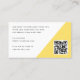 Trendy, amarelo e branco, cartões de visitas com sua foto na frente junto com nome, título e um slogan personalizado ou outro texto. Adicione suas informações de contato e outras informações à parte traseira e personalize o código QR. As cores de fundo e fonte podem ser personalizadas na ferramenta design.