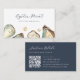 Cartões de visitas de chic costeiros apresentam um grupo de ostras e pérolas aquáticas em tons suaves de marfim e aqua empoeirado, com duas linhas de texto personalizado no centro. Personalize a parte traseira com os detalhes de contato do cheio, juntamente com um código QR personalizável. Perfeito para boutiques de praia, compres de presentes costeiros ou aluguéis de férias à beira-mar.