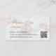 Elegante cartão de visita floral de pêssego mole. Um cartão de visita com um céu com nuvens e anjos e uma crista floral. Com informações facilmente alteradas para você. Altere o código QR para seu próprio. Parte de um papel de carta de escritório dos Designs Finos de Chessie.