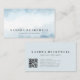 Este elegante e na moda moderno cartão de visita apresenta uma pintura abstrato de aquarela em azul macio. Personalize-o com o seu nome na fonte ousada e descartável da cinza de carvão vegetal, se e com as suas informações comerciais na fonte sans serif. A parte traseira da placa apresenta texto de cinza de carvão em um fundo sólido de pasta azul, juntamente com um código QR que direciona os clientes para o site da sua empresa.