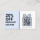 Cartão De Visita Código QR de Cupom de Desconto azul Marketing