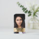 Cartão de visita profissional de chic com a sua foto sobreposta por uma fita metálica falsa em ouro escovado e sua profissão e nome em uma tipografia moderna mínima. No verso, personalize suas informações de contato e insira seu endereço de site para criar um Código QR verificável para clientes e clientes acessarem facilmente sua plataforma on-line.