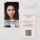 Cartão de visita com a sua foto, sobreposta pela sua profissão, e o seu nome em letras negrito e modesto. No verso, adicione seu endereço url do site para criar um código QR digitalizável e personalize com suas informações de contato na tipografia moderna contra um fundo de rosa claro.