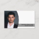 Este design de cartão de visita apresenta um espaço reservado para fotos com nome e ocupação de modelo. O verso inclui campos de texto para o nome comercial, detalhes e código qr. Substitua a foto do marcador de posição pela fotografia na frente e o código QR na parte traseira. Preencha os campos de personalização ou clique em personalizar para selecionar um estilo de fonte, tamanho e cor desejados. Faça com que o link de código QR envie clientes potenciais para seu site, revisões de clientes, fotos de projetos ou outro link específico. A foto do marcador de posição é cortesia em pexels.com.