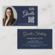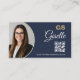 Cartão De Visita Código QR de Fotografia Dourada Azul do Agente de