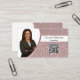 Uma brilho cor-de-rosa suave define o fundo deste design de cartão de visita com um espaço reservado para fotos à esquerda com o nome modelo à direita e o Código QR à direita. O verso inclui um design coordenado e cores com campos de texto para o nome e os detalhes da empresa. Substitua a foto do marcador de posição pela sua fotografia de formato vertical e pelo seu código QR na frente. Preencha os campos modelo ou clique em personalizar para selecionar um estilo de fonte, tamanho e cor desejados. Use seu código QR para enviar clientes ao seu site, análises, fotos ou outra página especial. A foto do marcador de posição é cortesia em pixabay.com.