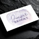 Faça uma declaração com este cartão de visita encantador com brilho de lavanda e lilás. Suas tonalidades roxas sonhadoras e efeito de brilho cintilante se combinam para um design suave, porém sofisticado, perfeito para criativos, freelancers e empreendedores. Fácilmente personalizável com um código QR para compartilhamento contínuo de mídias sociais, sites ou informações de contato. Um toque chique e profissional para networking moderno.