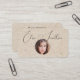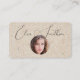 Este design simples e profissional apresenta uma tipografia elegante de script, uma fotografia redonda (substitua-a por uma imagem quadrada para melhores resultados), muitos ícones de mídia social e um código QR para personalizar com seu site, blog ou qualquer link. Os ícones das mídias sociais podem ser movidos ou excluídos usando a ferramenta design.