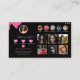 Um cartão de visita preto e rosa maravilhosamente projetado que inclui sua foto de cheio e suas próprias fotos em grade, assim como seu nome, título, código QR e identificador de mídia social. A foto do cobrir é sobreposta atomicamente com uma camada opaca preta para visibilidade do texto. Perfeito para influentes nas mídias sociais. Simplesmente personalize e torne-o seu!