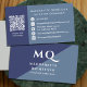 Cartão De Visita Código Qr de Monograma Azul e Branco do Marinho Mo