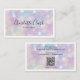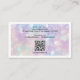 Este cartão de visita holográfico moderno apresenta seu nome ou nome comercial em uma tipografia elegante de script definida em relação a um fundo brilhante iridescente de tendência. Este cartão de visita é perfeito para profissionais da indústria da beleza e além (artista de esp. maquiagem, especialista em unhas, dono de salão de beleza, cabeleireiro, esteticista, esteticista e muito mais). Você pode personalizar a frente com seu nome e título (ou endereço/local do site) e adicionar suas informações de contato (incluindo endereço do site e contas de mídia social), código QR digitalizável e texto "conectar-se conosco" no verso.
