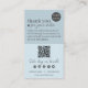 Cartões de agradecimentos de código QR de script mínimo e moderno azul para empresas Adicione este cartões de agradecimentos a seus clientes para um toque quente. Mostre sua apreciação e esclareça sua embalagem com um design azul macio e uma inscrição moderna. Personalize-o, incluindo um código de cupão especial para encorajar compras repetidas. Adicione seu logotipo e perfis de mídia social para ajudar os clientes a permanecerem conectados. Inclua seu link de site no código QR para facilitar o acesso. Ajude a criar relações fortes com os clientes e torne a sua marca memorável.