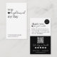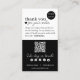 Simples Cartões de agradecimentos de código QR mínimo e moderno de script preto e branco para empresas Adicione este cartões de agradecimentos de na moda às suas ordens de clientes para um toque quente. Mostre sua apreciação e esclareça sua embalagem com um design clássico, chic e moderno cartaz. Personalize-o, incluindo um código de cupão especial para encorajar compras repetidas. Adicione seu logotipo e perfis de mídia social para ajudar os clientes a permanecerem conectados. Inclua seu link de site no código QR para facilitar o acesso. Ajude a criar relações fortes com os clientes e torne a sua marca memorável.