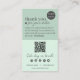 Cartões de agradecimentos de código QR de Script Mínimo Verde e Moderno para Empresas Adicione este cartões de agradecimentos de na moda às suas encomendas de clientes para um toque quente. Mostre sua apreciação e esclareça sua embalagem com um design verde suave e uma inscrição moderna. Personalize-o, incluindo um código de cupão especial para encorajar compras repetidas. Adicione seu logotipo e perfis de mídia social para ajudar os clientes a permanecerem conectados. Inclua seu link de site no código QR para facilitar o acesso. Ajude a criar relações fortes com os clientes e torne a sua marca memorável.