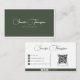 Cartão De Visita Código QR de Script Verde Verde Escuro Elegante