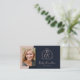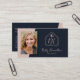 Cartão de visita de agente imobiliário elegante e profissional com uma foto. Logotipo moderno do realtor no lado frontal com fonte do script em cor-de-rosa e fundo cor azul-marinho. Adicionar seu código QR