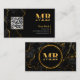 Cartão De Visita Código QR do Cabelo Inicial Dourado Marble Preto E