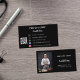 Um clássico fundo negro. Personalize e adicione sua foto, título, nome/nome comercial e texto na frente. Modelo para endereço e telefone na frente. Texto branco. Anterior: Modelos para o seu nome, título, número de telefone, correio e endereço do Web site, o seu próprio código QR para o Web site ou conta de suporte social. Ícones/conta do Facebook e Instagram.