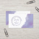 Cartão de visita branco e roxo elegante para uma pequena empresa na indústria de beleza ou de eventos com seu nome de empresa dentro um círculo simples com o site escrito em texto curvo ao redor do círculo. A cartão de visita de beleza é impressa para parecer como se mergulhada na cor da água roxa do rio. O outro lado apresenta seu código QR com o identificador de mídia social abaixo. Adicione seu nome em um script bonito com suas informações de contato abaixo.