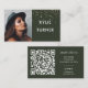 Cartão de visita personalizável em tons de verde da floresta esmeralda com efeito impressão de brilho dourado, com foto e nome, endereço, site e detalhes das mídias sociais. Gerar um novo código QR que liga ao seu próprio site clicando em "personalizar este modelo". Adicione o seu endereço de URL e um código QR será gerado apenas para você.