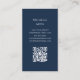 Cartão de visita de intérprete músico, com uma imagem de violino única definida em um fundo azul e branco marinho. As letras brancas e pretas podem ser personalizadas com suas informações. A parte traseira tem um código QR para você usar ou excluir. Excelente para promover sua carreira musical ou orquestra!