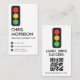 Promova a marca do instrutor de condução com este cartão de visita moderno com um ícone de semáforo limpo. O layout em negrito destaca seu nome, função e detalhes de contato enquanto o verso inclui um código QR para fácil reserva. design pronto para impressão com uma aparência profissional que se adapta a várias cores.